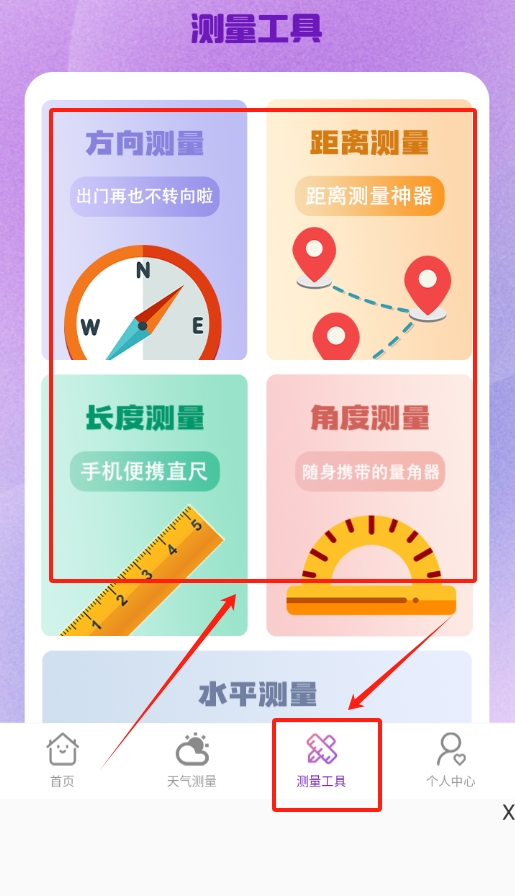 4、测量工具页面里有测距、直尺等工具,点进去选择需要的工具,按提示操作就能用,很方便。