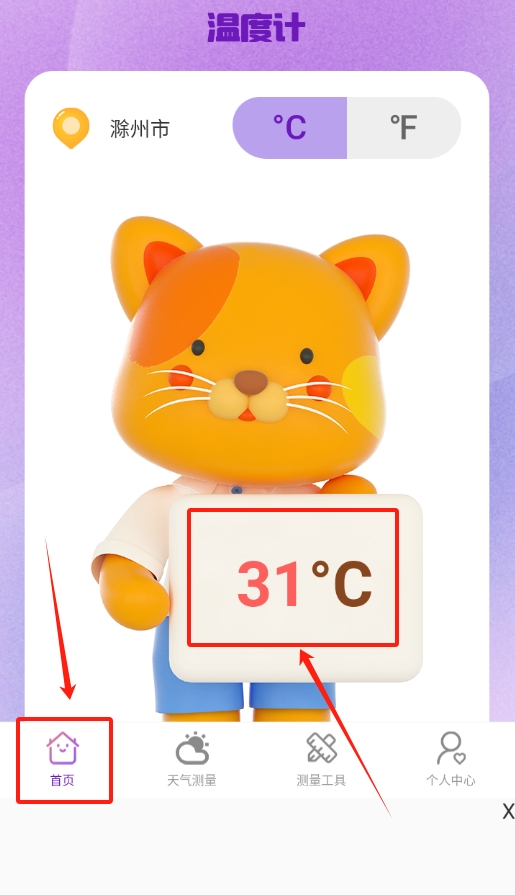 1、作为可爱又直观的数字天气温度计软件,有多彩背景图片和喵喵可爱造型,数字展示直观,告别传统刻度。