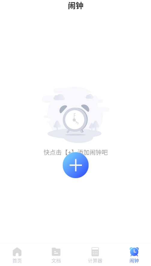 4、通过闹钟功能可自定义提醒时间,点击"+"号即可添加新闹钟并设置重复周期。