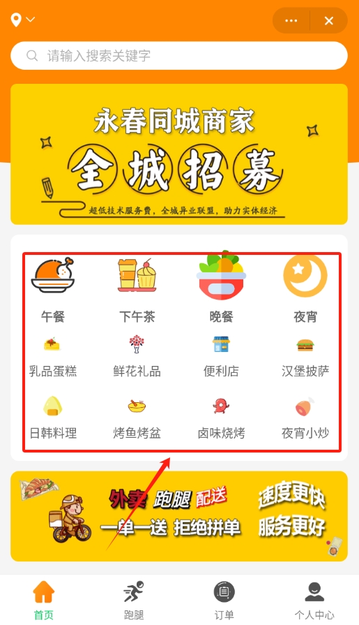 3、需要跑腿服务,在便民服务里找到跑腿选项,填写相关信息,提交订单后就会有骑手接单服务。