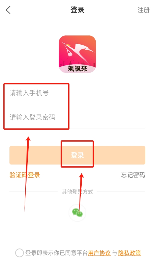 2、进入登录页面后,输入自己的手机号,再填好设置的密码,确认没问题后提交,就能完成登录了。