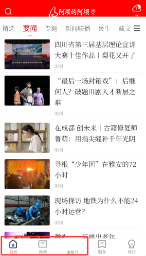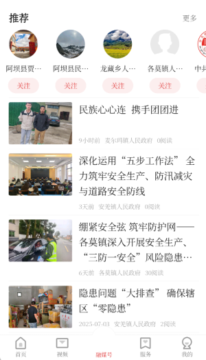 4、选择"融媒号"选项浏览阿坝州官方媒体发布的权威资讯和专题报道。
