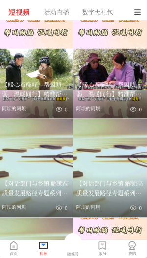3、点击"视频"功能可观看本地短视频、活动现场直播等多媒体内容。