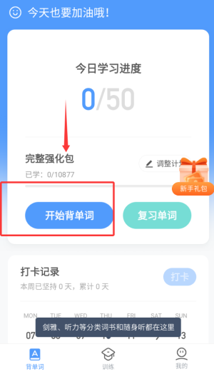 2、进入核心词汇学习界面后系统将自动推送每日记忆任务与复习内容。