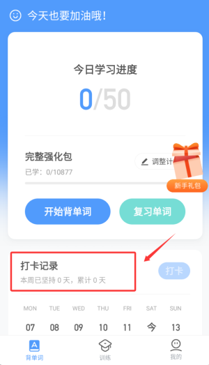 3、完成当日学习计划后可在个人中心进行学习成果打卡记录。