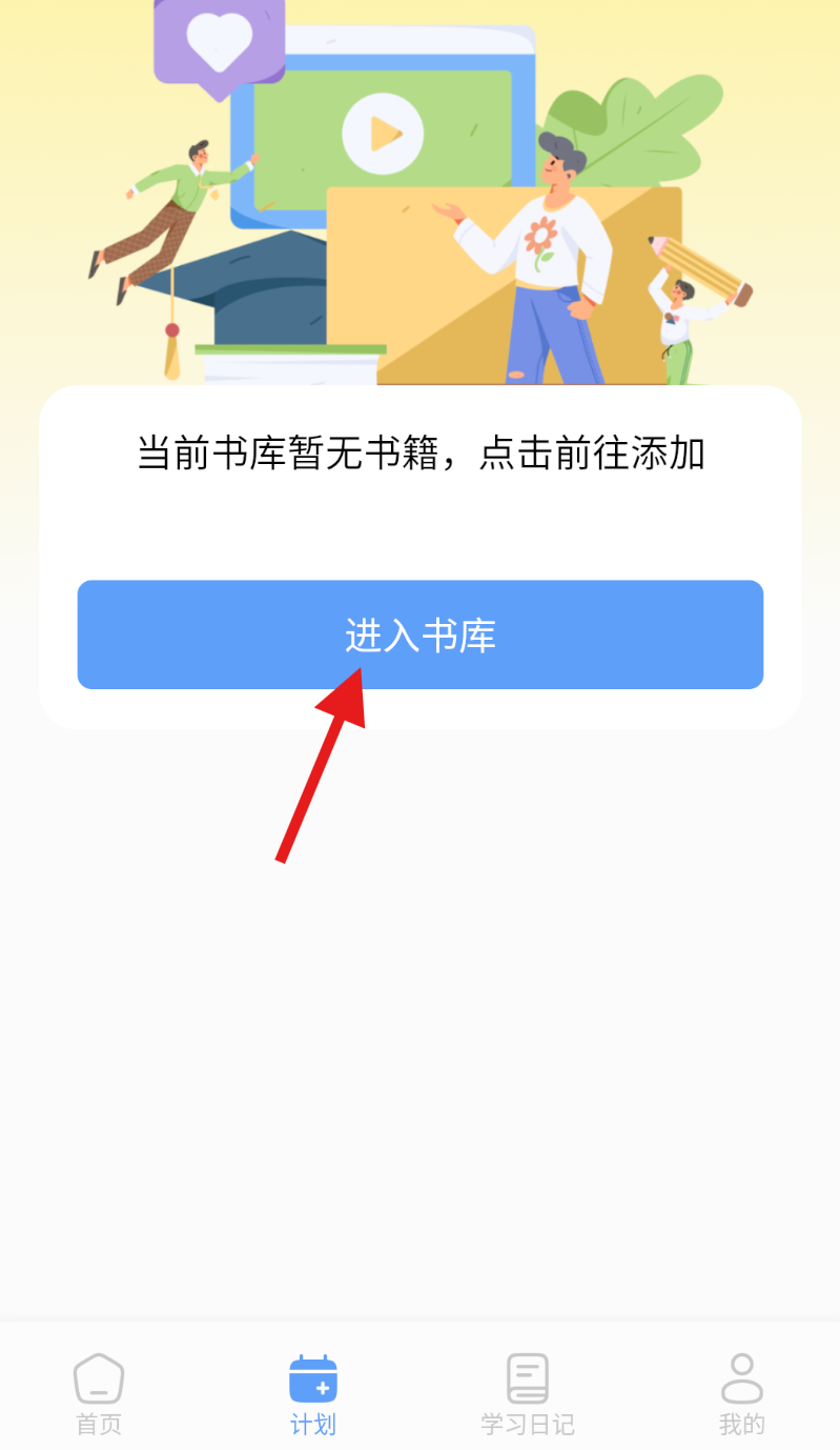 2、在该页面中间位置,找到 “进入书库” 的按钮并点击,跳转至书库选择界面。