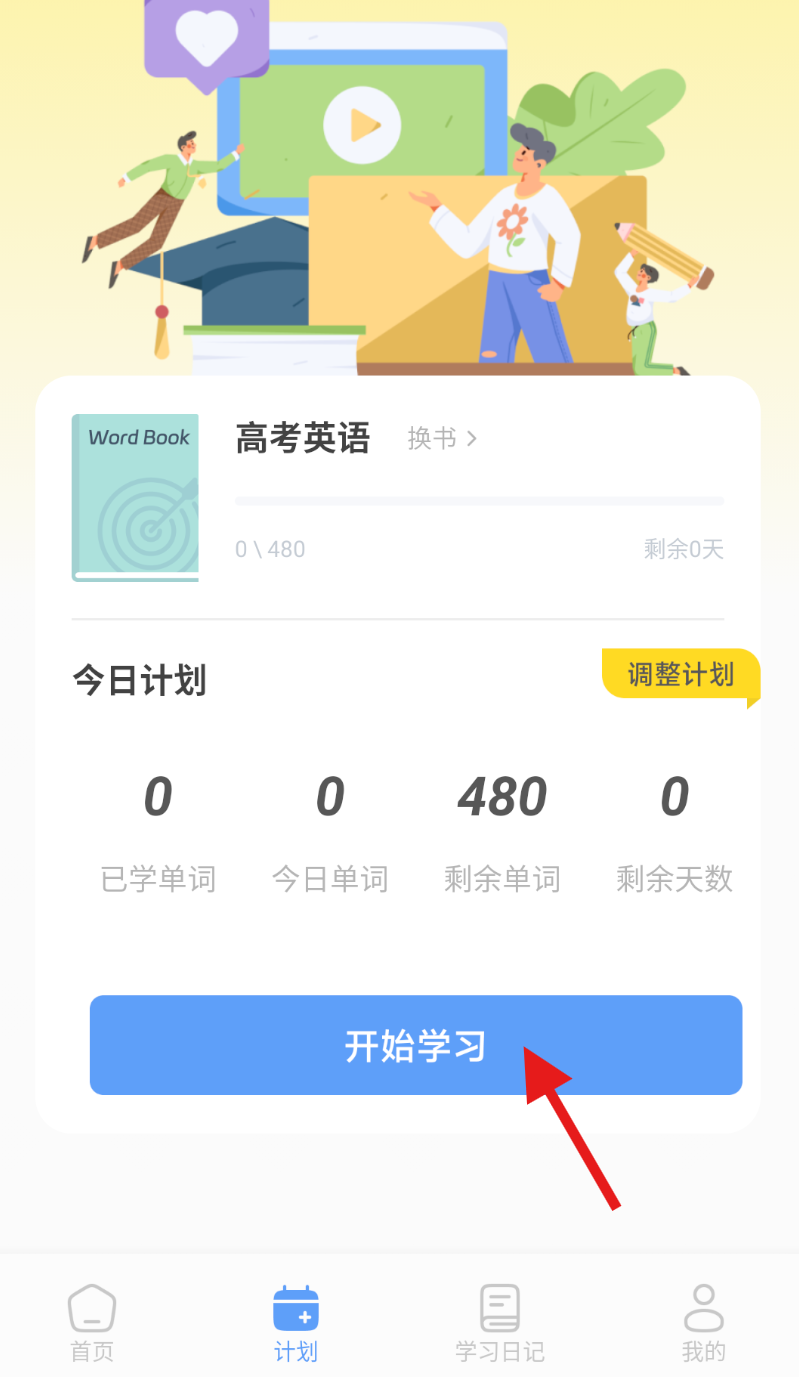 4、添加完毕后,返回之前的页面,此时就能看到已添加的词书,点击 “开始学习” 即可。