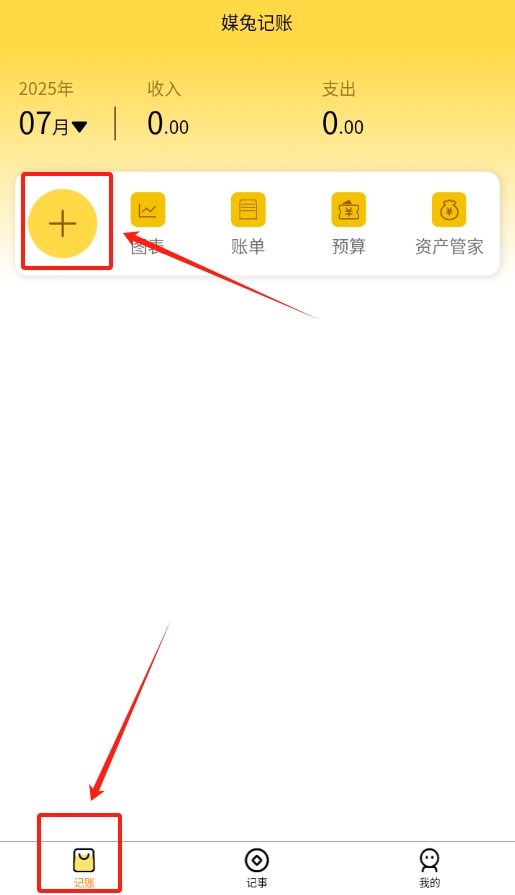 1、打开软件后,首页上有个加号,点一下就能开始记录账单,这一步很简单,跟着操作就行,很快就能进入记录页面。
