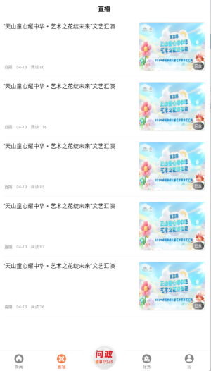 3、点击"直播"功能可观看新闻发布会、重大活动等官方现场直播。