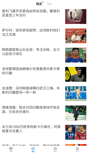 2、在首页导航栏点击"发现"选项,浏览最新的体育新闻和赛事动态。