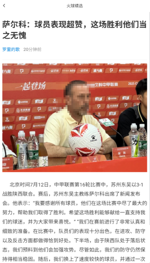 3、根据标题和配图选择感兴趣的赛事报道或球员专访内容。