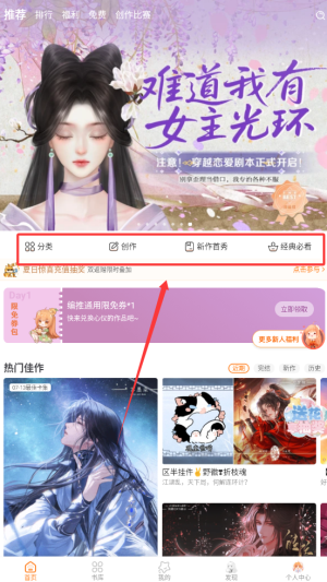 1、选择感兴趣的作品分类,如玄幻或甜宠,通过试读功能快速了解故事背景与角色设定。