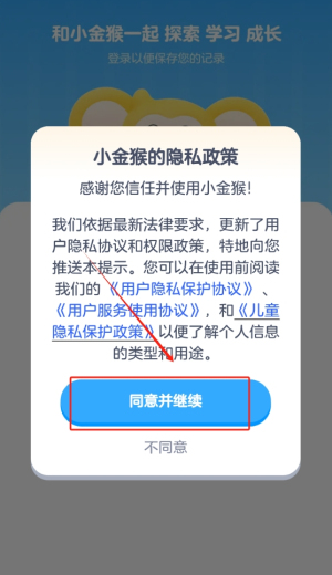 1、首先点击同意按钮,顺利进入应用界面,便于开始各项学习任务与活动。