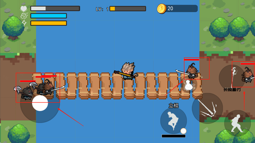 2、左侧控制角色移动方向,右侧为攻击与跳跃按钮,滑动屏幕可切换视角观察周围环境确保行动安全。