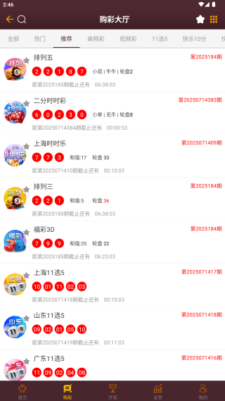 2、在推荐当中也是提供了比较热门的玩法,排列五、排列三、福彩等类型;