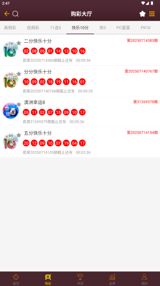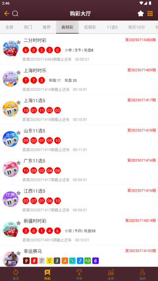 3、在高频彩板块中,能够看到各个地区不同的玩法,大家可以根据自己的兴趣来选择合适自己的类型;