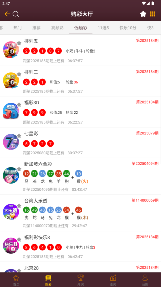 4、在低频彩当中,也是大家所熟悉的玩法,也就是开奖的频次不会那么多,其中也覆盖了其他不同的类型;