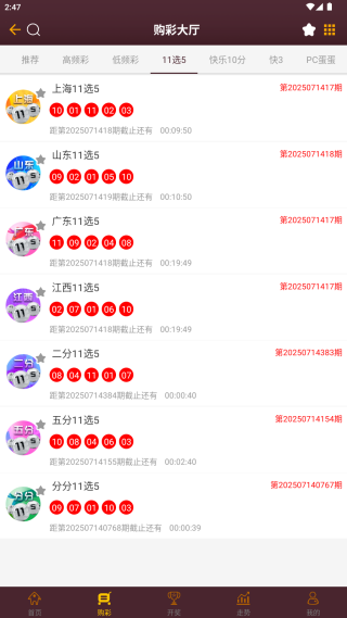 5、在11选5当中,提供了上海、山东、广东、江西等地区的玩法,还有二分11选5、五分11选5、分分11选5等玩法体验;