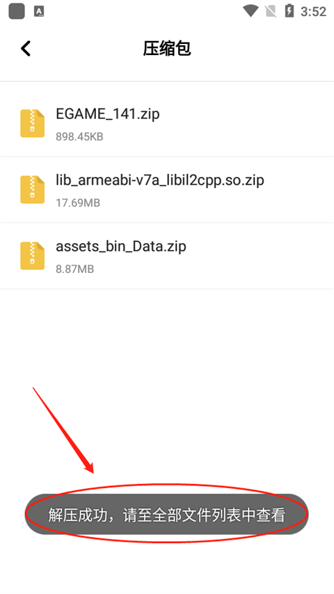 4、看到文件解压成功,可在全部列表中查看