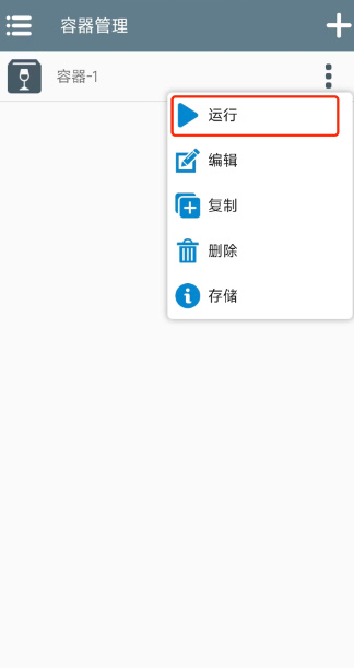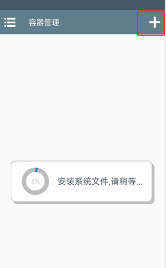 2、安装完成以后,点击容器管理右上角【+】,选择创建容器。