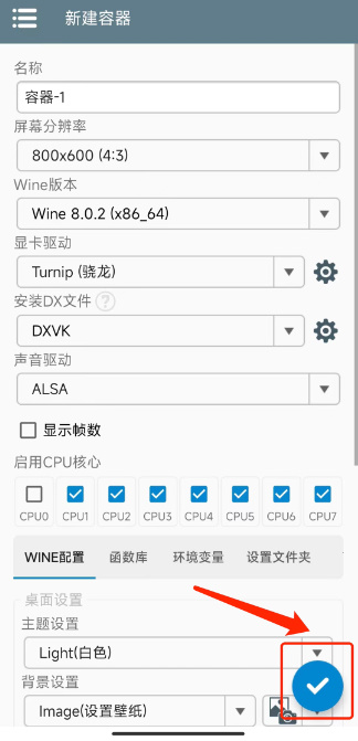 3、在新建容器页面输入对应需要的参数,模拟器版本等要求,然后点击右下角创建。