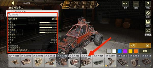 5、在改装页面可以对车辆进行改装,不同装备拥有相应的数据参考,根据需求进行自由组合搭配。