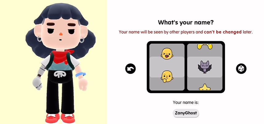 2、完成角色造型设计后,玩家需要通过选择喜欢的表情搭配以自动生成自己的名字;