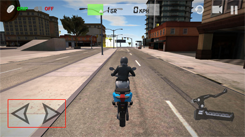 4、通过按住车把键下方的按键可以为摩托车进行加速,按住上方的刹车键即可进行减速;