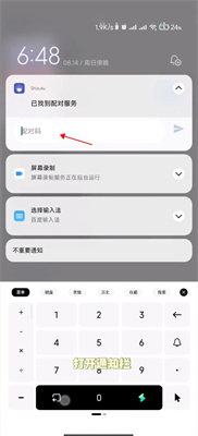 5、咋通知栏中输入配对码配对。