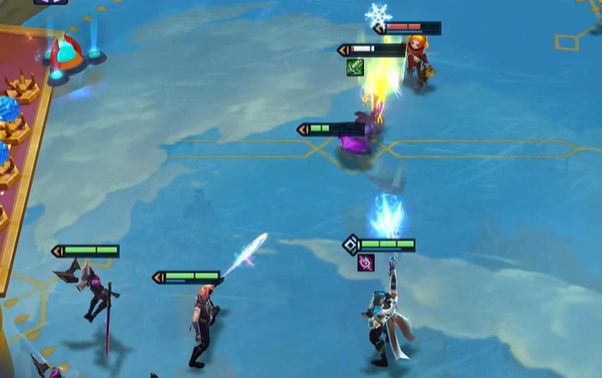4、合理的站位是获胜的关键,将一些高输出但是比较脆的角色放到阵容的后方,防止被GANK。