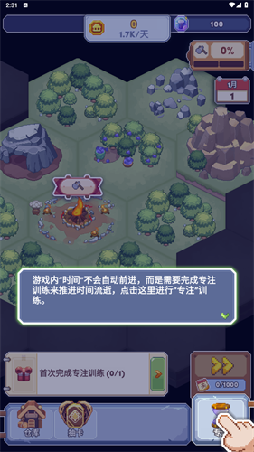 4、游戏需要玩家进行专注训练以推动时间,点击专注后在相应时间内不操作手机即可。