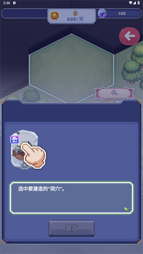2、游戏初期仅提供了洞穴可以建造,随着后续发展可以解锁更多建筑;