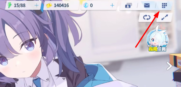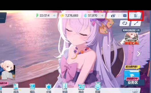 1、首先进入游戏之后,在右上角找到正方形的功能按键。