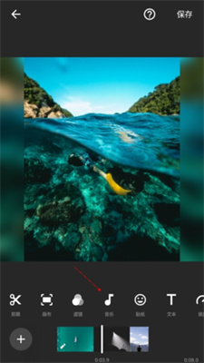 2、在剪辑界面点击【音乐】功能。