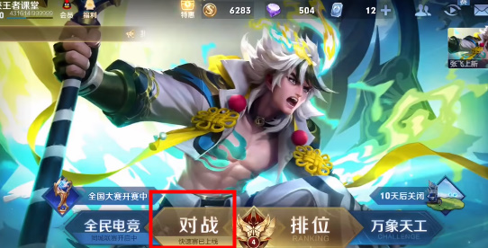 1、进入游戏之后,由于是新玩家,玩家还未解锁排位,需要点击左边的对战来进行普通的对局。