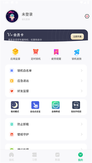 自律锁机是一款非常实用的自律习惯养成软件,通过软件能够软件你能够直接进行相应的自定义的锁机时间,里面的功能也是非常的多样,安全可靠,是你的学习生活的必备,通过软件你能够随时去设置智能锁机的模式,还有相应手机锁机倒计时提醒,直接就可以帮助大家远离手机的依赖,里面的功能也是免费提供的,也会支持相应的闹钟提醒,功能非常的丰富,完全可以帮助你去更好地管理你的工作以及生活,软件的操作非常的简单方便,能够帮助你去提升你的专注能力。