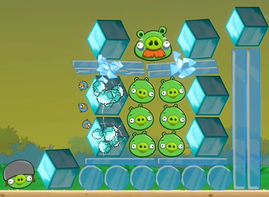 1、灵活运用不同的小鸟进行射击,尝试通过巧妙的碰撞对捣蛋猪进行攻击;