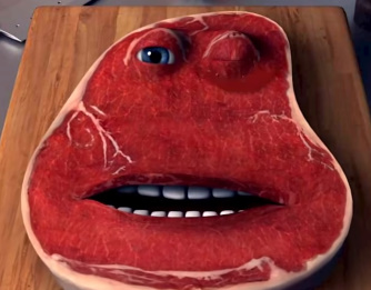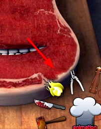 4、牛排有着自己的个性,同时会对玩家进行嘲讽,不断使用餐具和刀具进行料理操作。