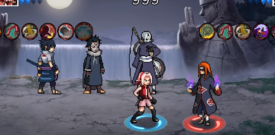 1、像素的游戏风格带来怀旧的游戏风格,搭配火影题材的格斗玩法,享受更多刺激的战斗。