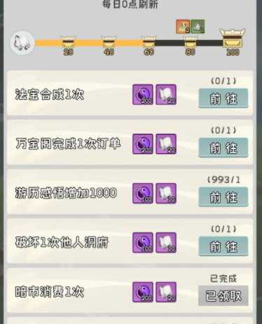 3、简单轻松的日常挑战,轻松快速的达成修真的情况,并有着各种资源奖励。
