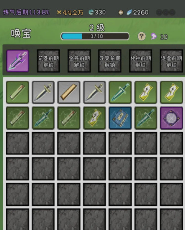 5、随着进阶的提升能解锁更多的法宝,将法宝组合搭配来提升属性加成,为修真冒险带来更多助力。