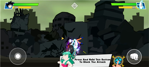 3、点击攻击键左侧的按键可以进行防御,即时使用可以有效抵挡敌人的攻势;