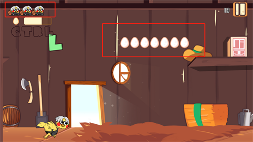 4、场景中会不定期出现鸡蛋等待玩家获取,玩家需要合理规划自己的跳跃槽以及生命值以尝试取得更好成绩。