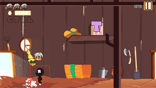 2、通过点击画面可以让小鸡进行跳跃,沿途会出现小黑子,玩家需要即时跳跃躲避他们以免受到伤害;