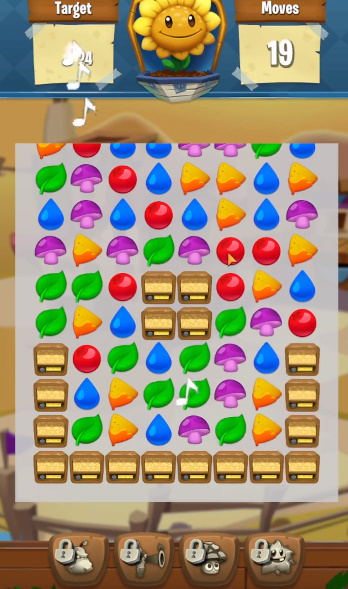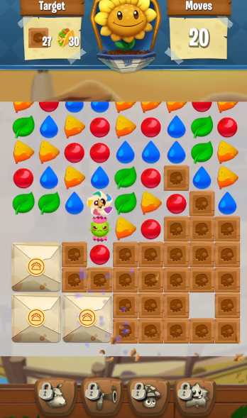 1.游戏在植物大战僵尸的玩法基础上,巧妙融合了三消的元素,匹配各种植物并收集物品展开闯关挑战。