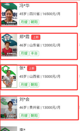 2、点开进入版块页面内系统将推荐各种保姆给你,我们可以点进去查看相关信息。