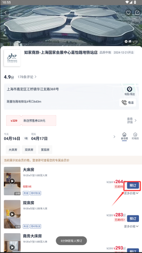 2、在酒店详情页查看实景照片、房型介绍和住客评价。使用VR看房功能360度了解房间实况,避免入住落差。