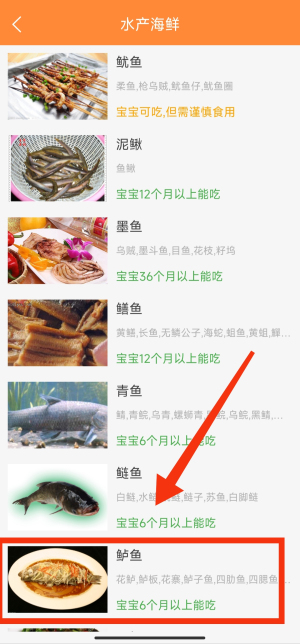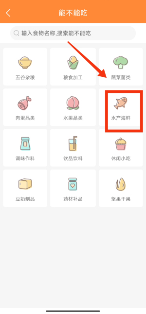1、新手爸妈不确定宝贝能不能吃某个食物是,点开你想查找的食物的分类。
