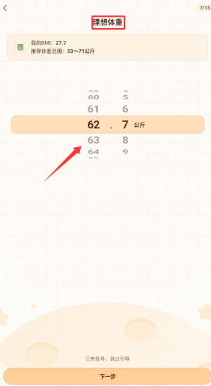 1、首次使用填写身高、体重等基础信息,设置理想体重与减重周期。