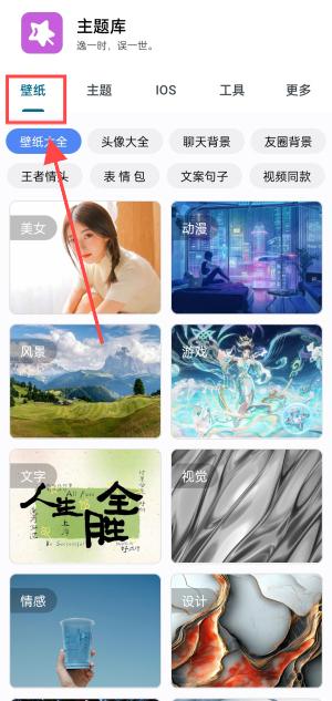 1、打开软件后,壁纸页面有各种分类好的壁纸。